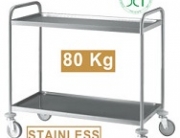 בנוי נירוסטה AISI304,18-10, מידות חלק עליון: 100X50 ס"מ, שקטע ואטום לרעש, קיבולת טעינה שימושי: 80 ק"ג למדף, 4 גלגלים מסתובבים 125Ø מ"מ, 2 עם מעצור וניתן לפירוק